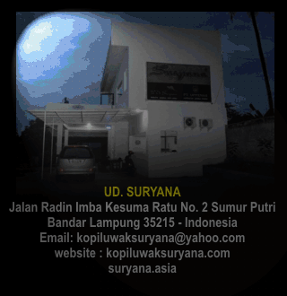 kami adalah perusahaan kopi luwak UD suryana salah satu produser kopi luwak terbesar di lampung, kami menyediakan jenis kopi luwak robusta dan arabica, dengan kualitas dan keaslian terjamin, kami memiliki garansi uang kembali sebagai wujud keaslian kopi luwak yang kami miliki, hubungi hendrawan 081279520001